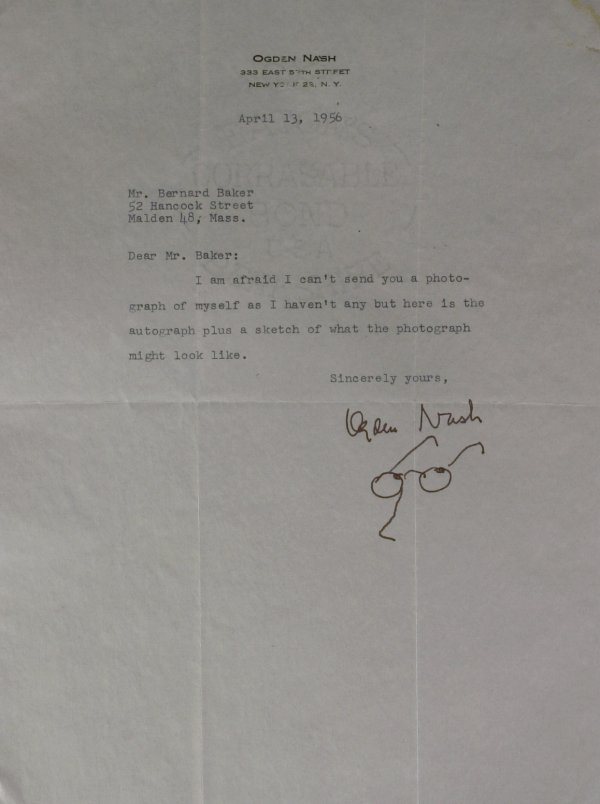 520 Poet OGDEN NASH Typed Ltr with Sketch Signed