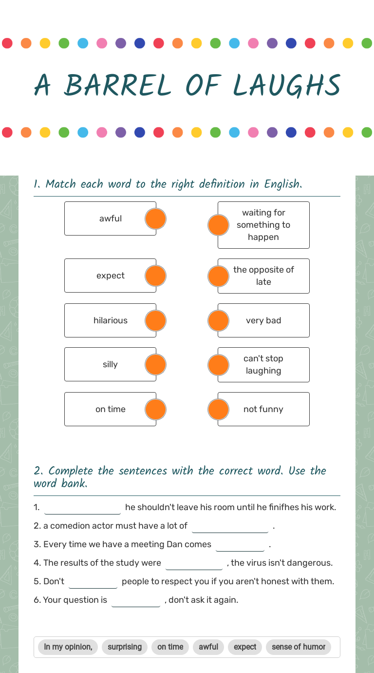 A BARREL OF LAUGHS Interactive Worksheet by עג'מי סמירה עיוני מג'דל