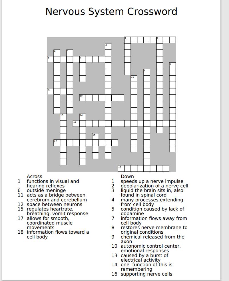 Nervous System Crossword Puzzle Answer Key Anatomy ANATOMY STRUCTURE