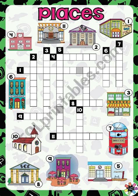 places in a town crossword ESL worksheet by jecika