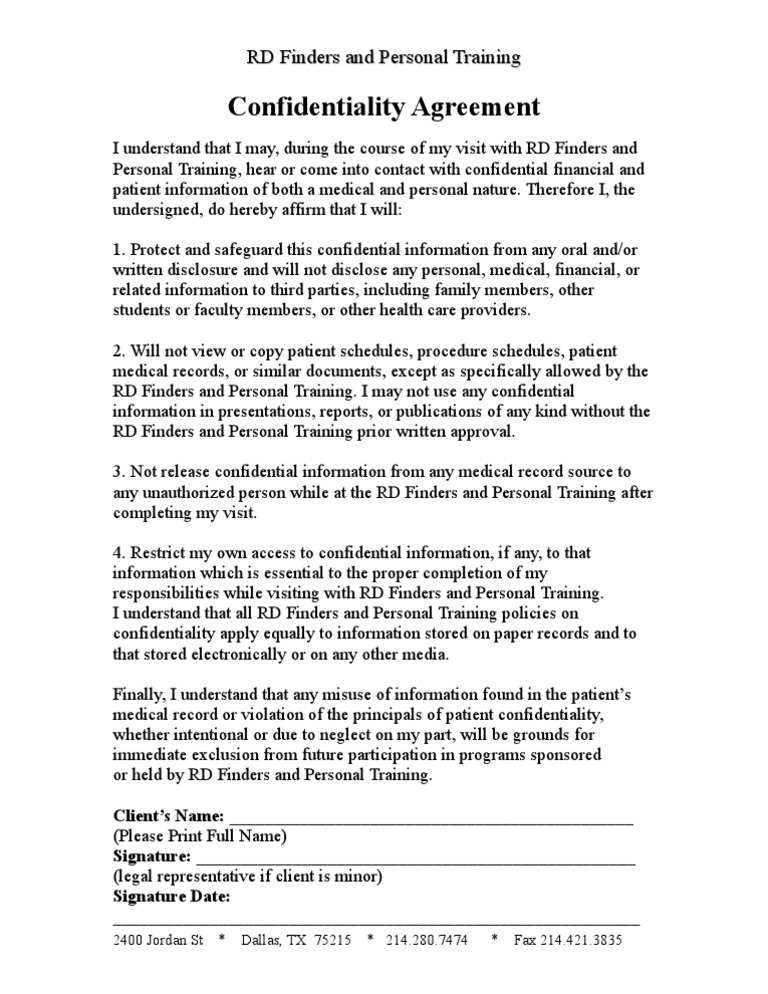 Confidentiality Agreement Sample Free Printable Documents