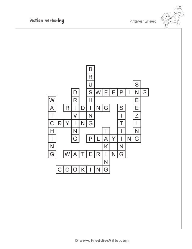Action Verbs Esl Printable Crossword Puzzle Worksheets For Kids