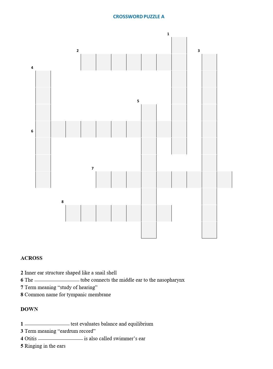 Solved CROSSWORD PUZZLE A 1 2 3 4 5 6 7 8 ACROSS 2 Inner ear