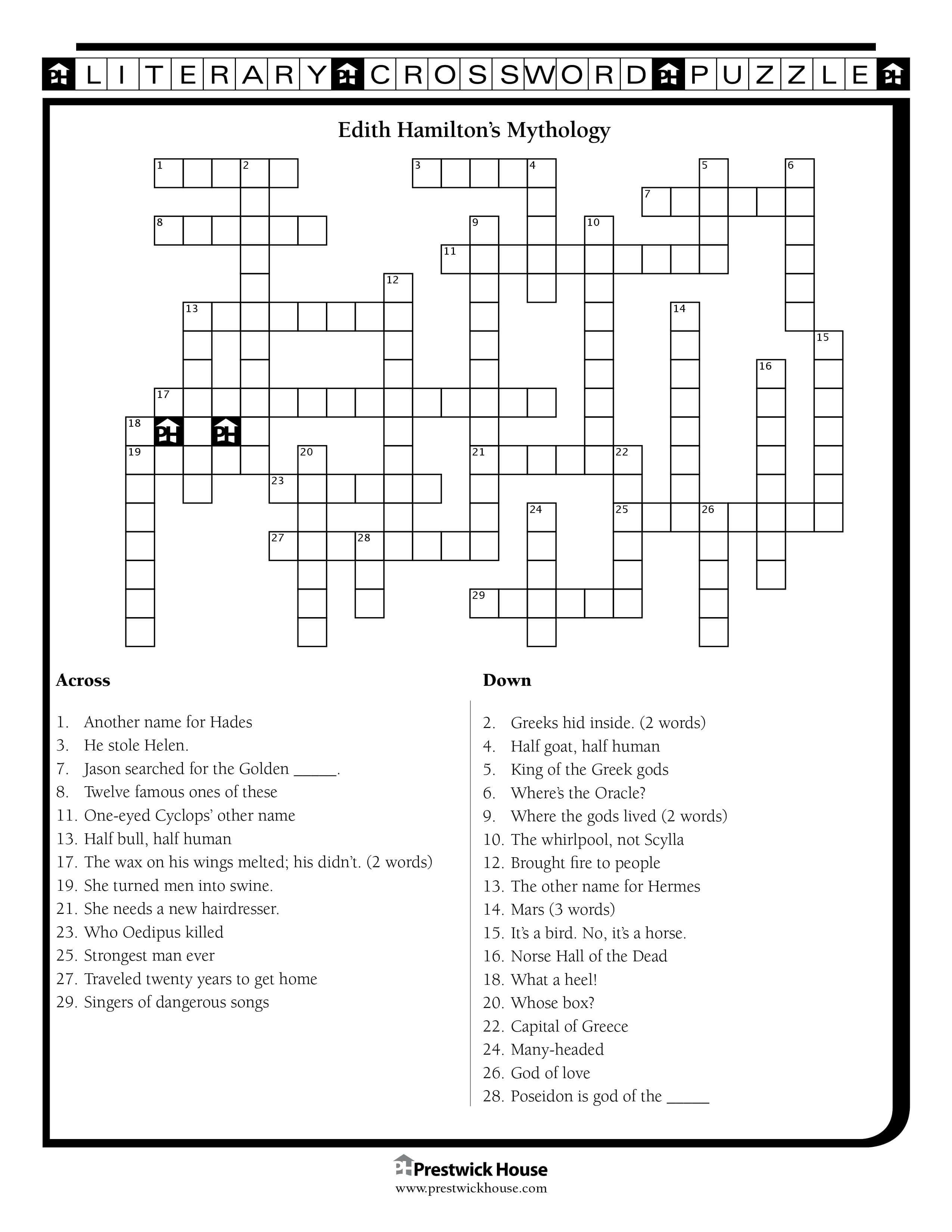 Free Crossword Puzzles English Teacher's Free Library Prestwick House