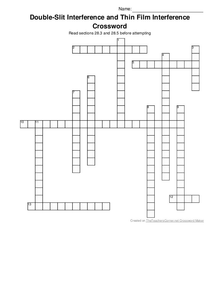 Double slit interference and thin film interference crossword