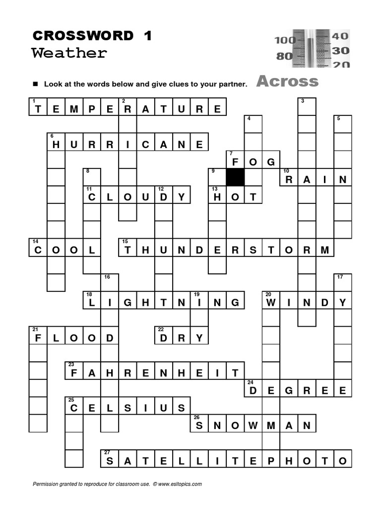 29 Esl Topics Crossword Weather Crossword Natural Events