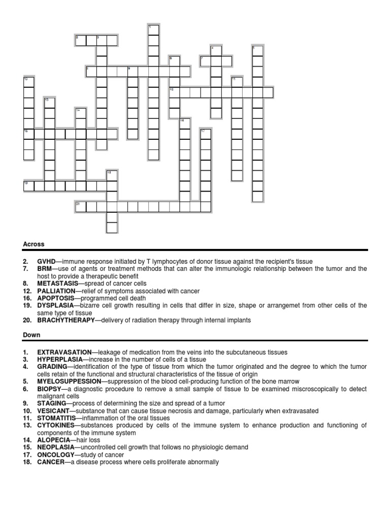 Oncology Nursing Crossword Puzzle PDF