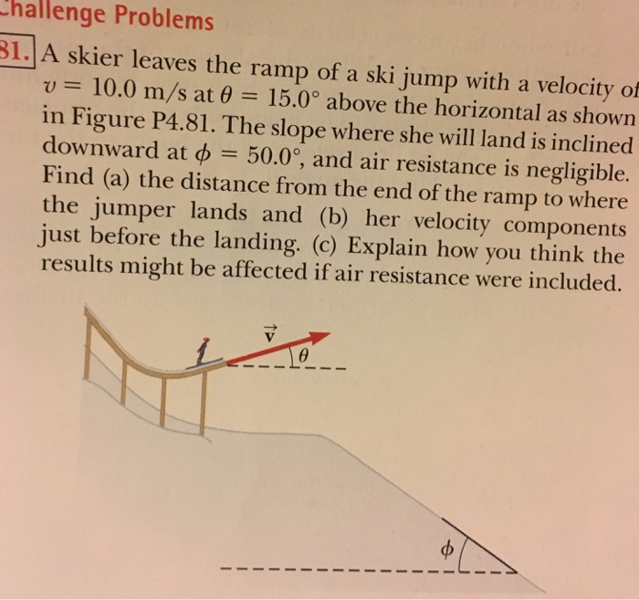 Solved A skier leaves the ramp of a ski jump with a velocity