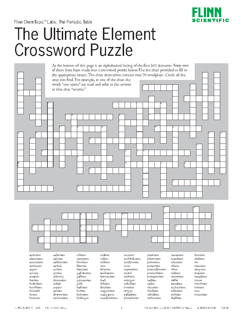 periodic table crossword puzzle answers