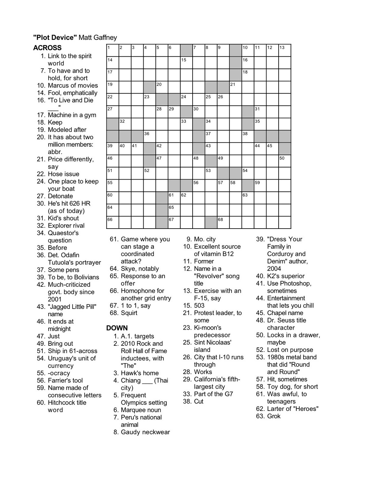 Matt Gaffney's Weekly Crossword Contest MGWCC 160 Saturday, June