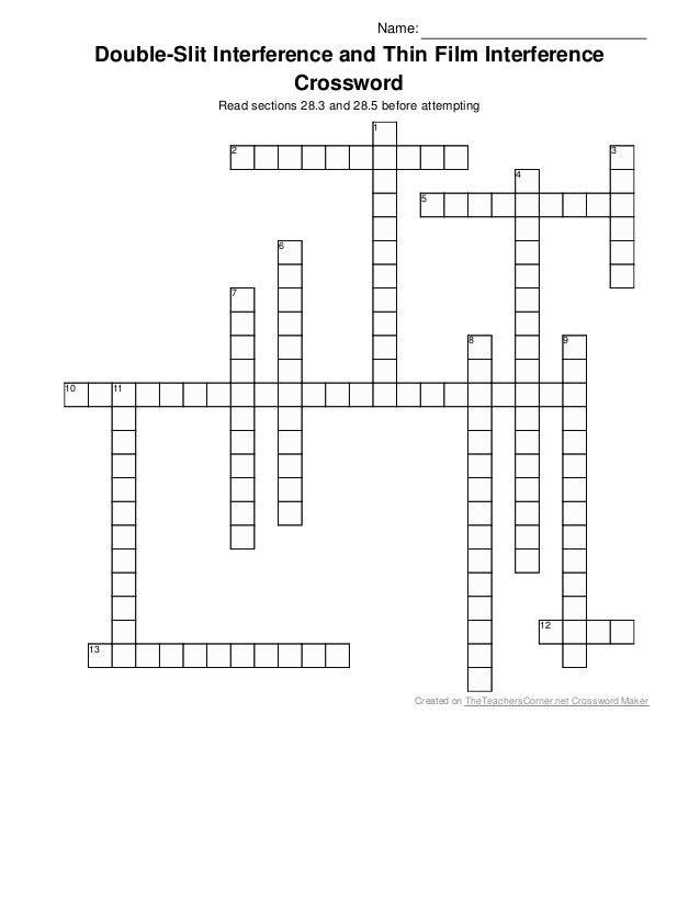 Double slit interference and thin film interference crossword and ans…