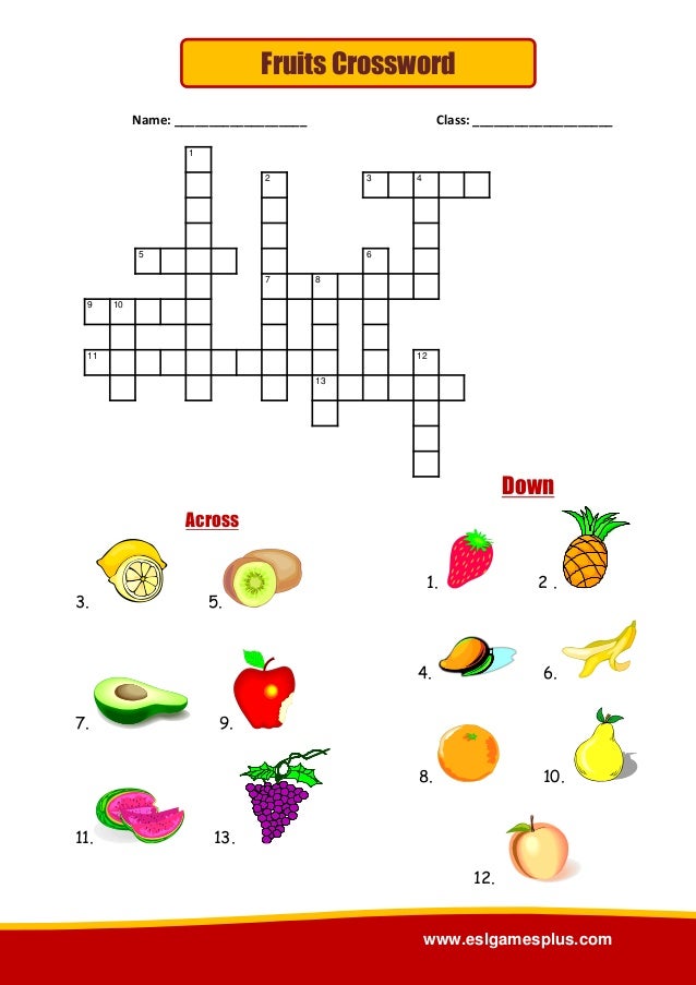 Fruits Crossword Puzzle for Middle School Free Printable Puzzle Games