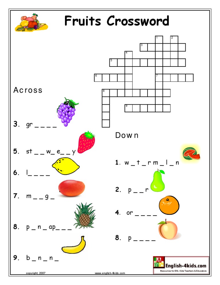FRUITS CROSSWORD Crossword, Crossword puzzles, Puzzles for kids