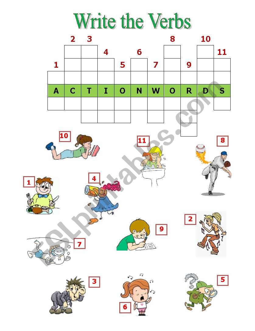 Action Verbs Picture Crossword ESL worksheet by debdebrit